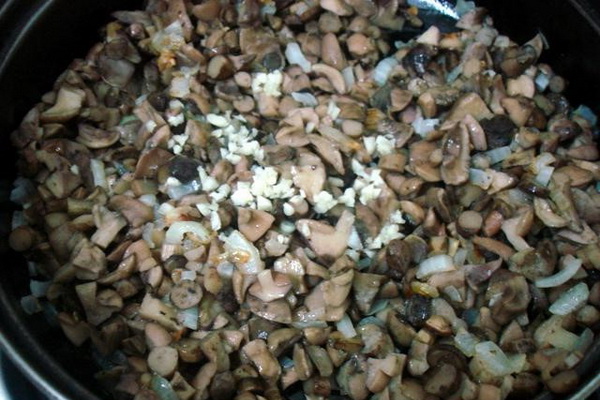 Couper les champignons en dés et les faire frire dans une poêle jusqu'à ce qu'ils soient dorés.