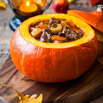 - La recette des pommes de terre à la viande et aux champignons dans une citrouille