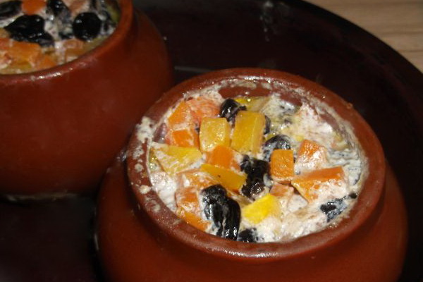 - Potiron à la viande et aux champignons, cuit dans des pots