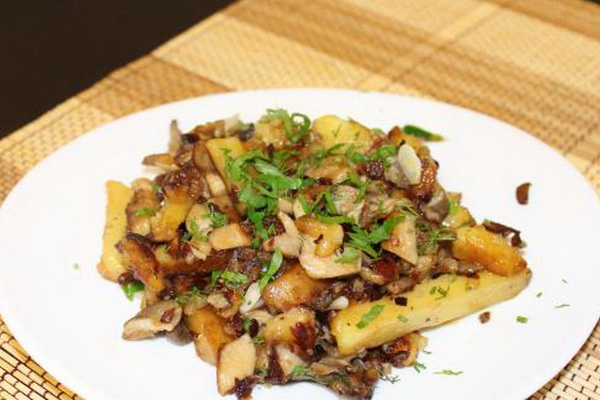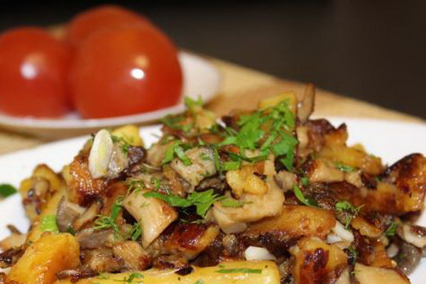 - Comment faire frire les pleurotes avec des pommes de terre et du porc: recette avec photo