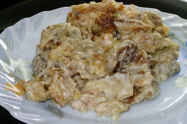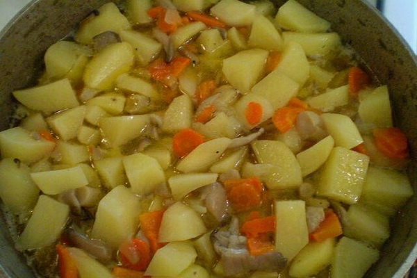 - Comment faire frire les pleurotes avec pommes de terre et poitrine de poulet dans une casserole: une recette avec une photo