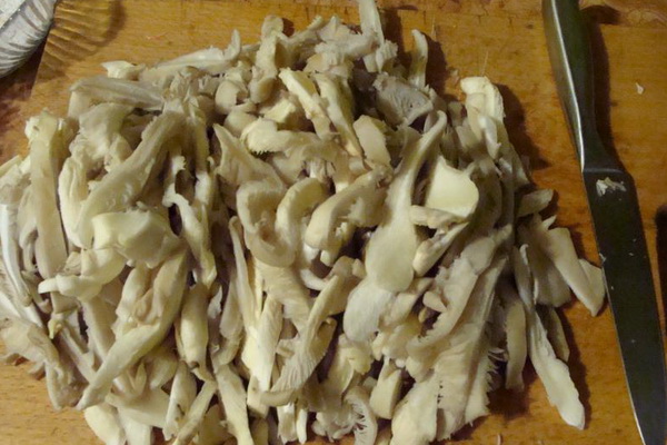 Faire bouillir les pleurotes, les laisser refroidir et les couper en petits morceaux. Prenez un peu de bouillon dans les plats dans lesquels les corps de fruits ont été cuits et mis de côté.