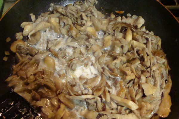 Comment faire frire les pleurotes avec des oignons et de la crème sure en utilisant cette recette étape par étape?