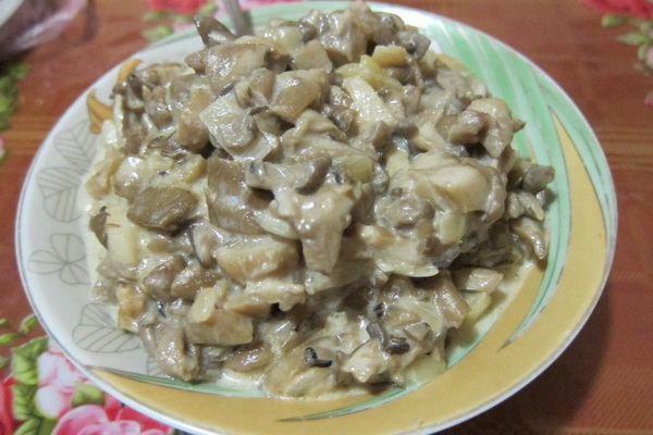 Plat de champignons savoureux et bien-aimé, qui sera un excellent complément aux pommes de terre, aux pâtes et aux céréales. Grâce à cette délicatesse, votre déjeuner ou votre dîner peut être complété et complet. En outre, si vous voulez faire des tartes, faire des crêpes ou de la pizza, vous ne pouvez pas imaginer le meilleur remplissage.