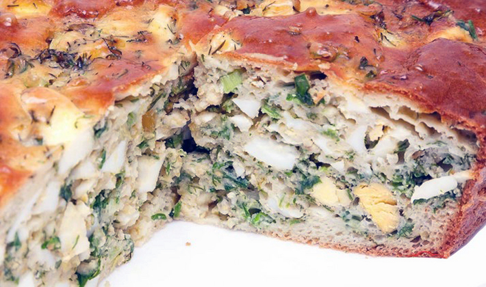 - Hacher la surface avec une fourchette, graisser avec un oeuf et mettre au four. Cuire à 180-200 ° C jusqu'à tendreté.