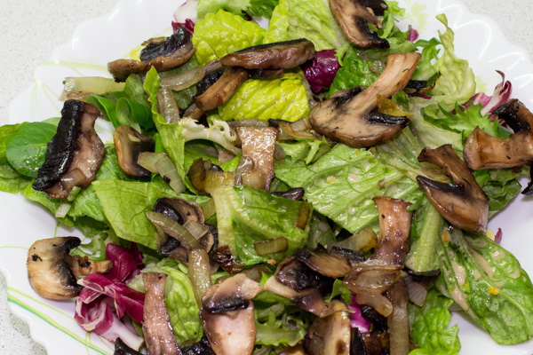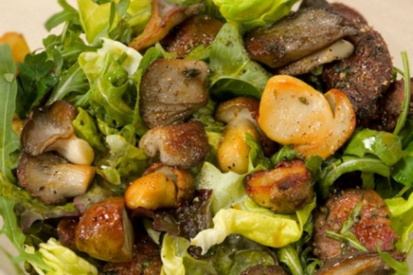 Et en conclusion, quelques photos de recettes de salades de champignons au poulet (filet et foie).