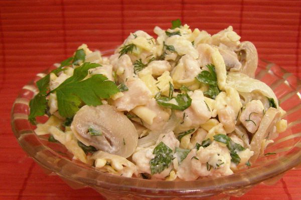 - Comment faire une salade de champignons au poulet: recettes et photos