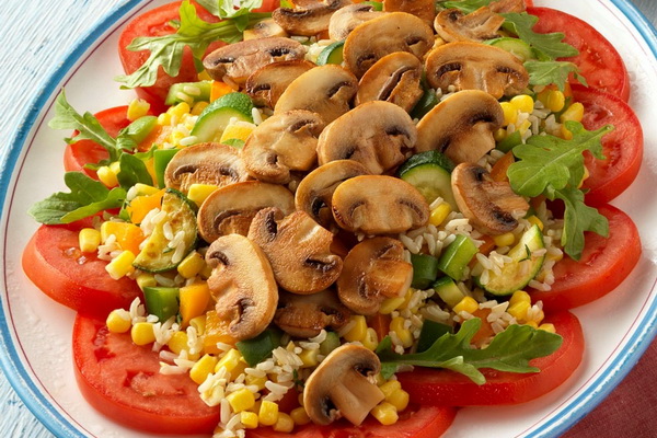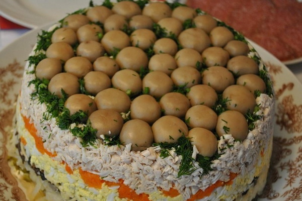 Voici des photos de salades aux champignons selon des recettes destinées à toutes les fêtes: