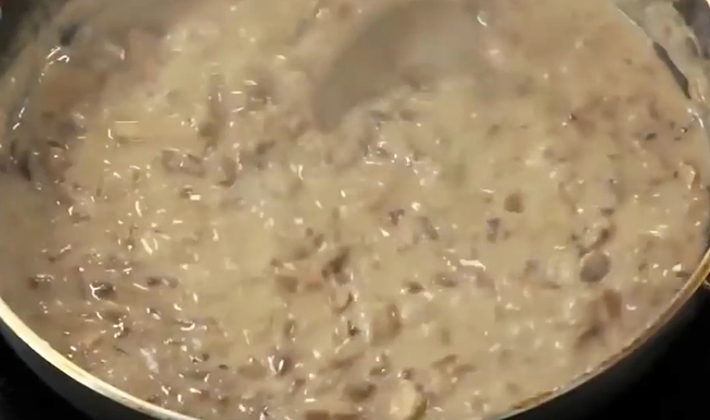 Il est préférable de bien rincer les champignons infusés, puis de transférer la masse dans la casserole. Selon cette recette, la sauce maison de champignons séchés selon cette recette est meilleure si elle est filtrée à travers un tamis, éliminant ainsi les éventuelles impuretés.Le temps nécessaire pour chauffer les champignons sera de 35 minutes. Lorsque le produit est prêt à l'emploi, il doit être haché manuellement ou à l'aide d'un mixeur. Faites fondre le beurre et versez-y l'huile végétale. Introduire la farine et l'oignon haché, laisser mijoter le tout pendant 5-7 minutes. Versez 1 tasse d'eau chauffée et de la crème chaude. Ajouter les champignons à la masse bouillie, saler et poivrer. Incorporer la sauce obtenue à une masse homogène, porter à ébullition et laisser mijoter pendant 10 minutes. à feu doux. La sauce aromatique obtenue peut être retirée du four et servir immédiatement.