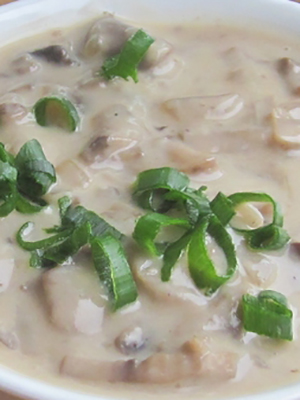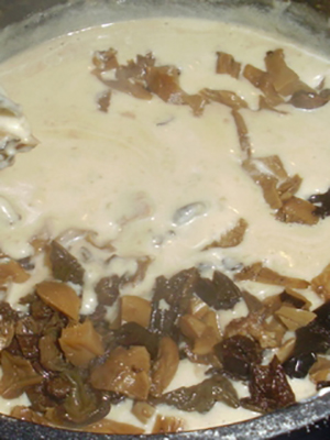 - Champignons séchés, sauce à la crème de champignons en tranches