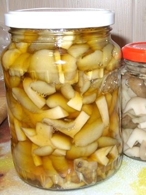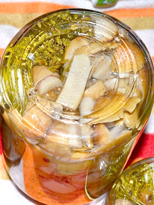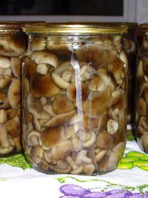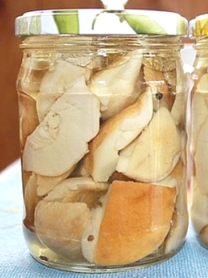 Disposer les champignons dans des bocaux, verser la marinade chaude et rouler.