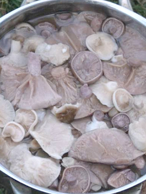 - Introduire les champignons et laisser bouillir dans la marinade pendant 30 minutes.à feu doux.