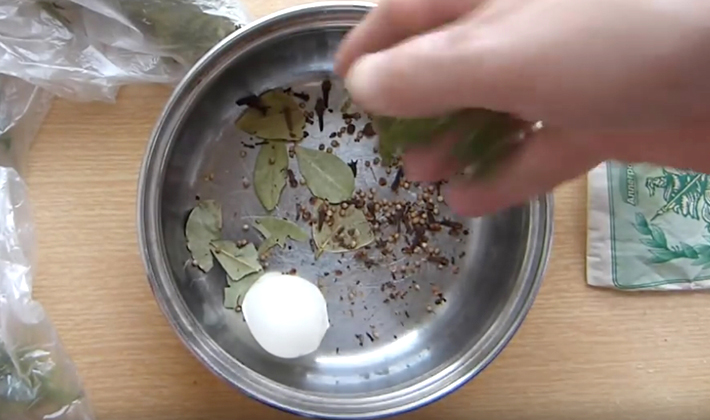 - Porter l'eau à ébullition, introduire toutes les épices et les assaisonnements, à l'exception de l'acide citrique et des gousses d'ail.