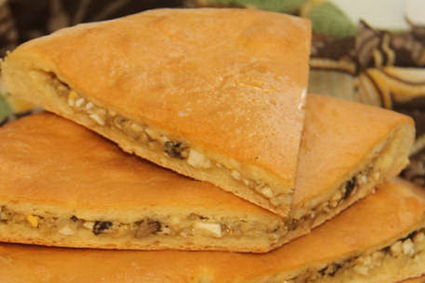 Saupoudrer la plaque de cuisson avec de la farine, étendre la pâte en un gâteau. Placer la garniture au centre, pincer les bords, étirer le gâteau du centre vers les bords, faire un trou au milieu pour permettre à la vapeur de sortir. Selon cette recette, un délicieux pyroa aux champignons devrait être cuit à 220 ° C pendant environ 10 minutes. Graisser avec du beurre au moment de servir.