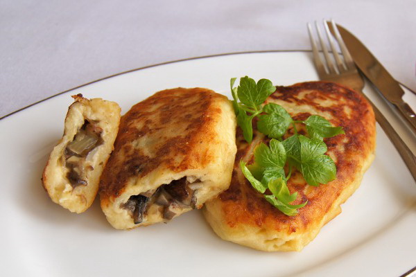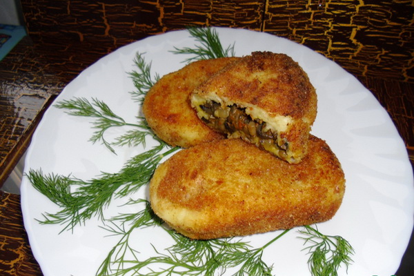 Formez de gros gâteaux à partir de la masse de pommes de terre préparée, placez une farce aux champignons au milieu de chacun d’eux, reliez les bords des gâteaux et donnez-leur une forme de croissant. Mouiller les galettes avec un œuf, les rouler dans la chapelure et les faire frire dans une poêle à frire chauffée avec du beurre. Aux tartes frites aux champignons préparées selon cette recette, servez la sauce à la crème sure séparément.