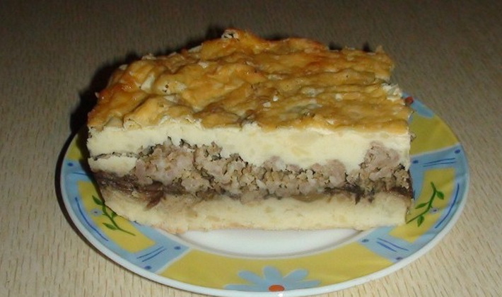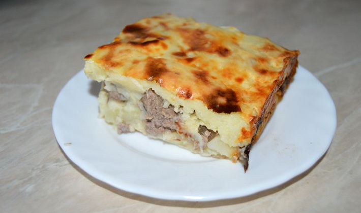 Mettez la masse de viande dans un moule, recouvrez-la de purée de pommes de terre et lissez-la à la fourchette. Cuire une casserole de pommes de terre bouillie avec des champignons au four pendant 20 minutes jusqu'à ce qu'elle soit dorée.