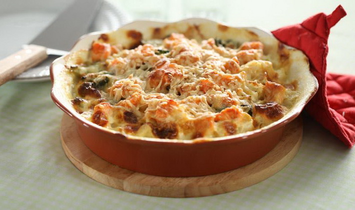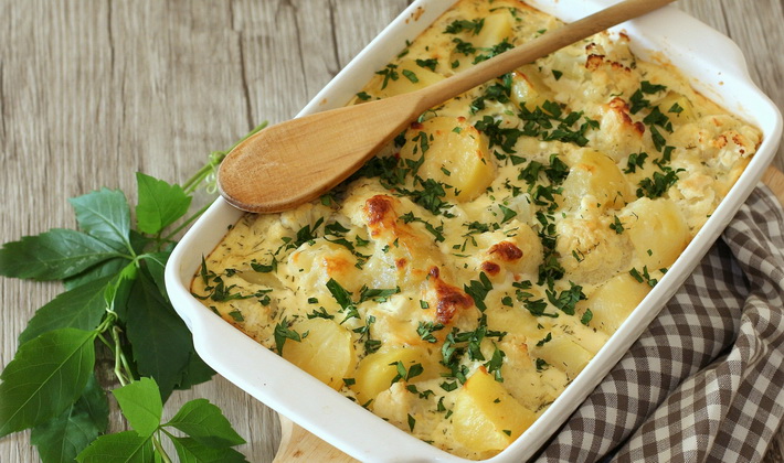 - Casserole de pommes de terre au four avec champignons et chou-fleur au four