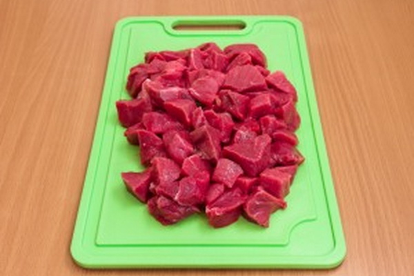 1. Lavez la goulache, séchez-la soigneusement avec un essuie-tout, coupez-la en petits morceaux;