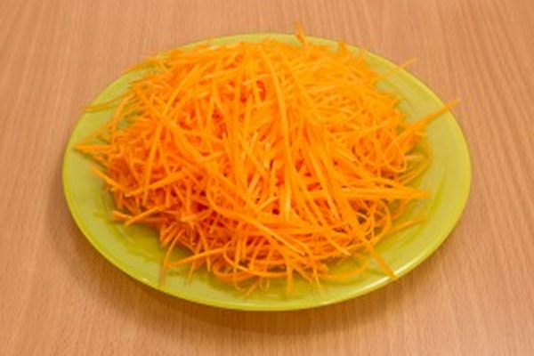 3. Lavez les carottes du sable et de la terre, épluchez-les, râpez-les pour préparer des "carottes coréennes".