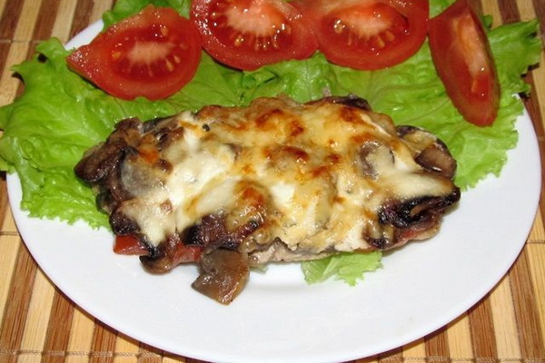 Une attention particulière mérite la recette pour la viande frite avec des champignons et du fromage, qui peut être cuit, à la fois au four et dans une casserole.