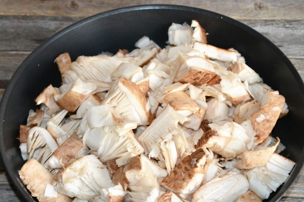 Pour nettoyer les parapluies des écailles, laver et couper les jambes et couper les chapeaux en plusieurs parties.