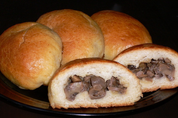 Les galettes frites avec des champignons avec des parapluies plairont à tous vos proches. Une garniture aussi élégante se fait simplement, mais dans les tartes, elle est très savoureuse et parfumée.