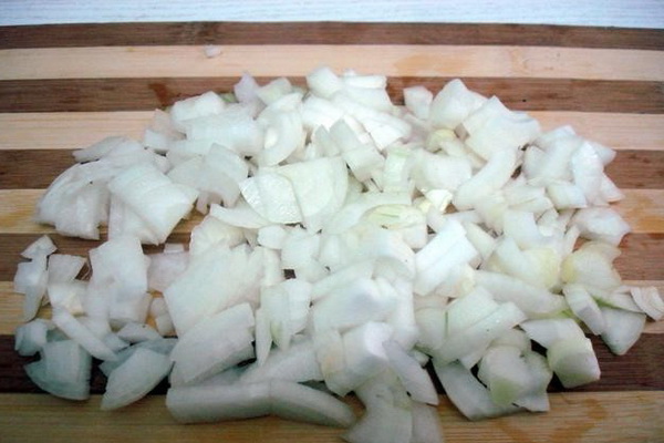 Hachez les gousses d'ail et l'oignon, faites-les frire dans du beurre avec l'ajout de légumes jusqu'à tendreté.