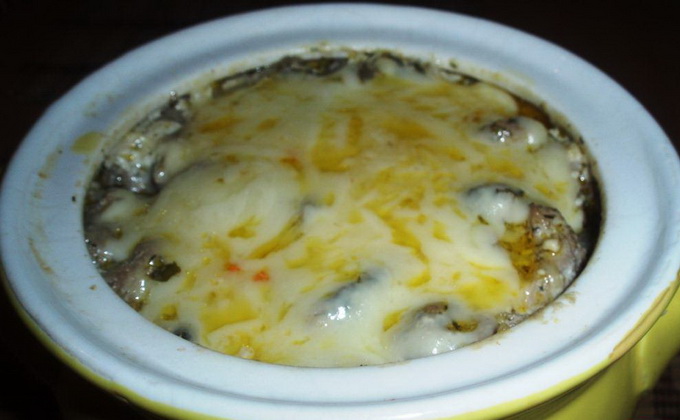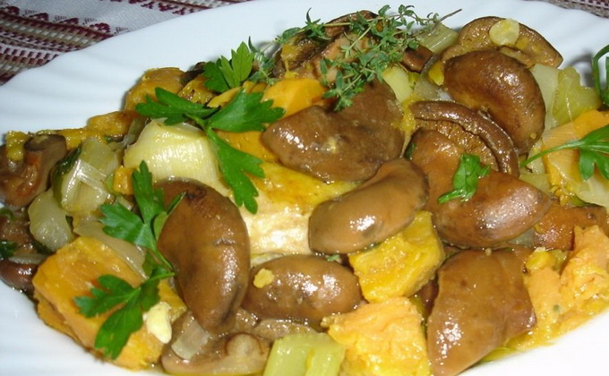 Mettez les casseroles dans le four et laissez mijoter 20 à 25 minutes à 180 ° C. Servir saupoudré d'herbes hachées. Pour la sauce pour le rôti cuit selon cette recette avec de la viande et des champignons, vous devez faire fondre et chauffer l'huile dans une casserole, ajouter la farine tamisée et faire revenir doucement, en remuant, jusqu'à ce que l'odeur de noix rôties apparaisse. Incorporer la farine en remuant constamment, diluer avec la crème sure chauffée.