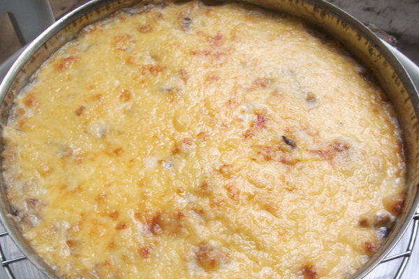 Ensuite, ouvrez le couvercle et saupoudrez la masse obtenue avec du fromage et faites cuire jusqu'à la fin du temps imparti.