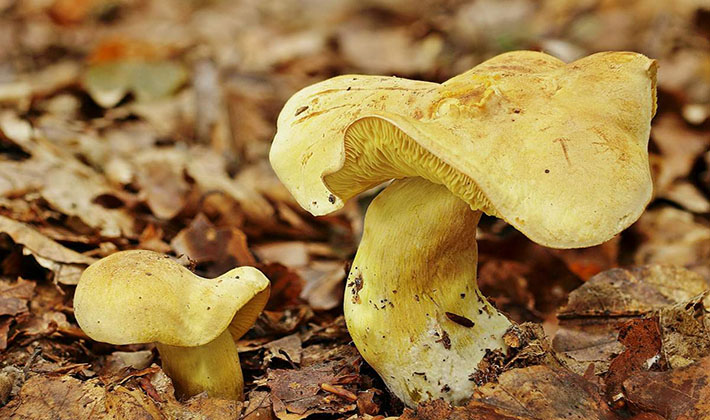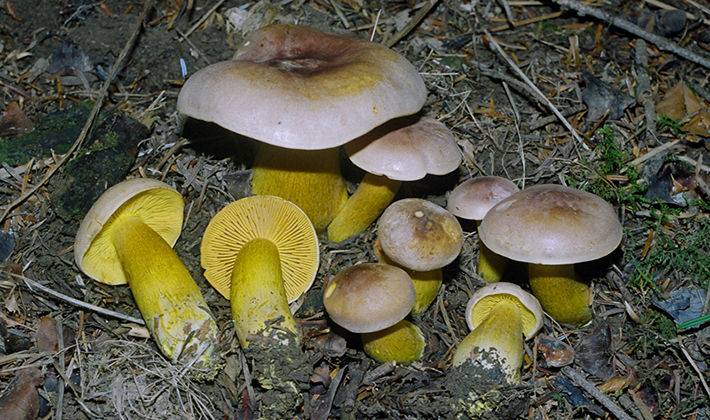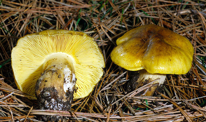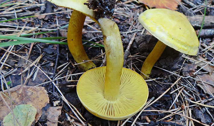 La fructification: Le champignon, jaune soufre, commence à fructifier en août et se termine en octobre.