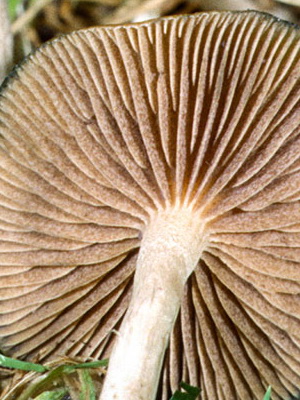 Là où on trouve des psilocytes, leurs homologues croissent également: le tendre ingrédient de Konocibe (Conocybe tenera), caractérisé par des plaques plus foncées de couleur chocolat foncé.