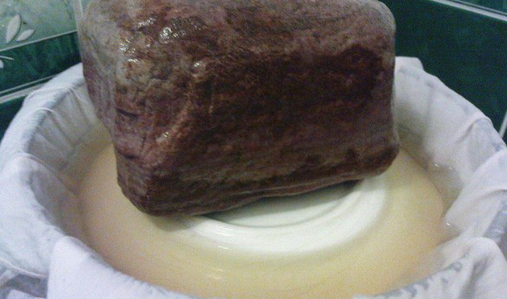 - Après quelques jours, la pièce est vérifiée pour la saumure, elle devrait recouvrir complètement les seins.
