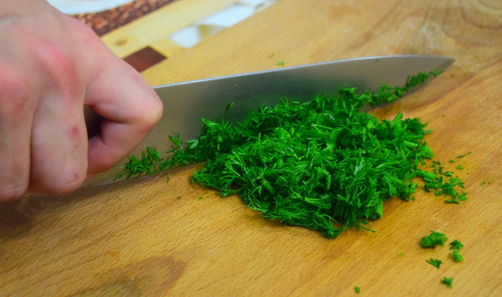 L'aneth soigneusement lavé et haché finement avec un couteau.