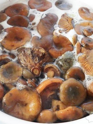 La recette de champignons safran marinés en hiver est divisée en étapes.