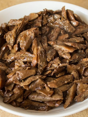 - Dans un récipient séparé, mélanger les champignons bouillis, le sel, la coriandre, le poivre et l'ail, coupés en tranches.