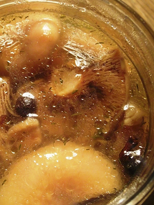 - Versez l'huile afin que les champignons flottent littéralement dedans.