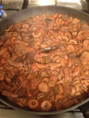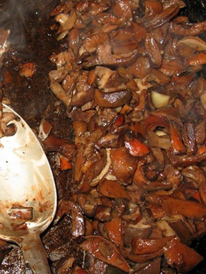 - Frire et ajouter la masse de champignons, mélanger et continuer à frire pendant 10-15 minutes.