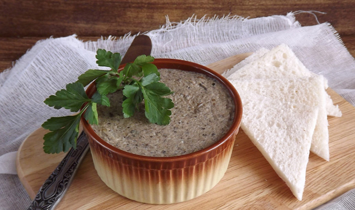 Pate de champignons marinés est excellent comme apéritif, servi froid. En outre, il va bien avec les soupes, les plats principaux et les plats d'accompagnement. Mais cette version de la pâte ne convient pas pour le stockage à long terme.