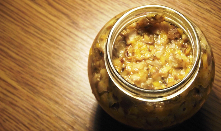 La conservation d'une pâte de champignons à l'ail est une option de cuisson simple qui peut être utilisée pour des mets salés, à tartiner.