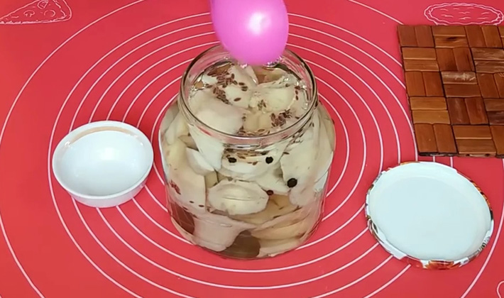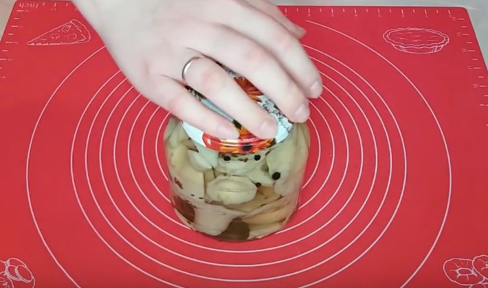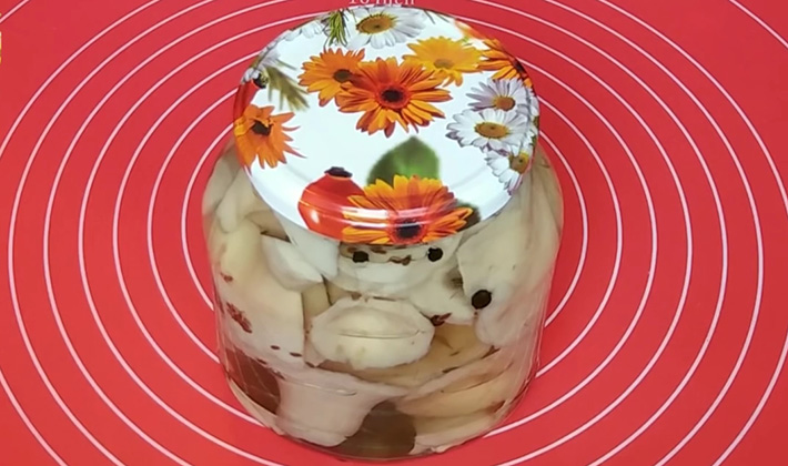 - La saumure doit recouvrir complètement tous les champignons. Si cela ne se produit pas, les rives doivent être additionnées d'eau bouillie froide, sinon les champignons noirciront.