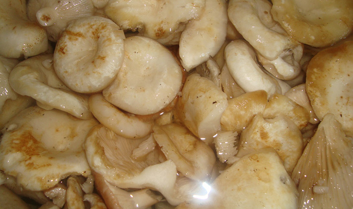 - Passé ce délai, les champignons sont recouverts de saumure et sont répartis dans des pots secs et stériles.