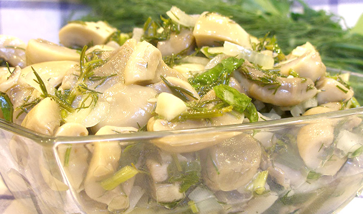 Champignons salés à l'ail et au raifort