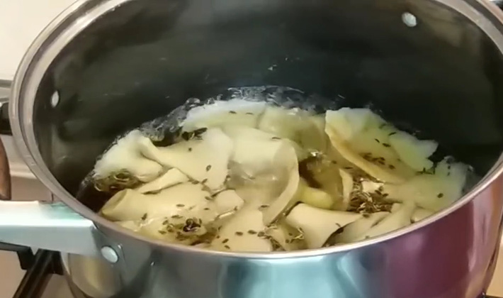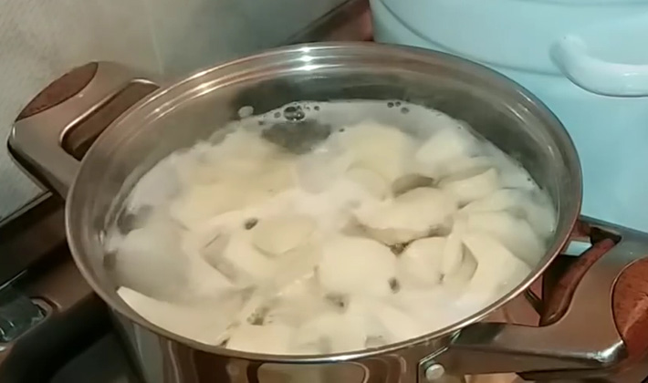 - Nous lavons les seins trempés, coupons en tranches et les mettons dans de l'eau bouillante.