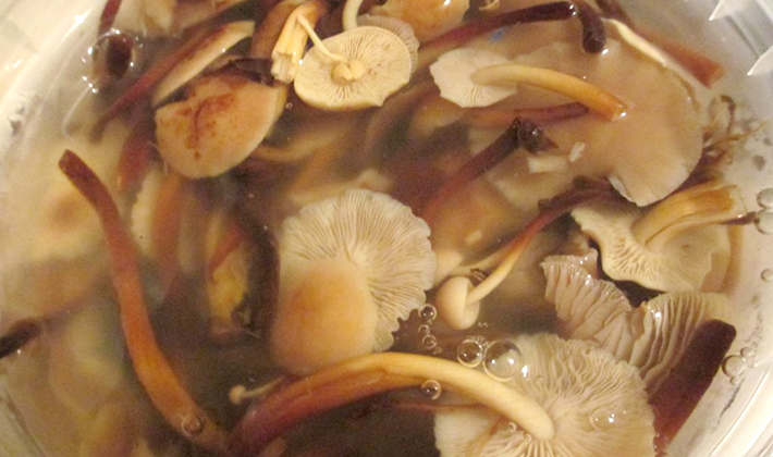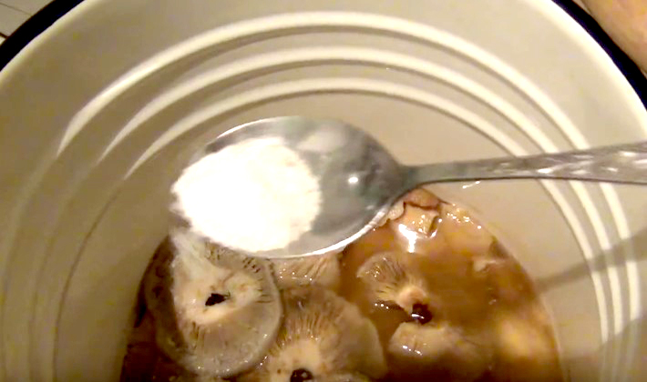 La saumure obtenue n'est pas versée, mais est utilisée avec les champignons ou même sans eux. Elle donne un goût agréable aux soupes et aux sauces.
