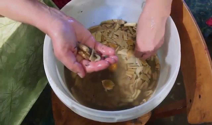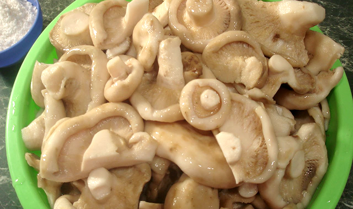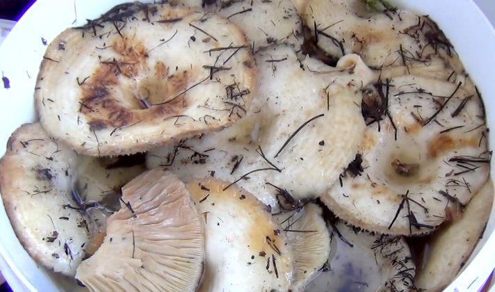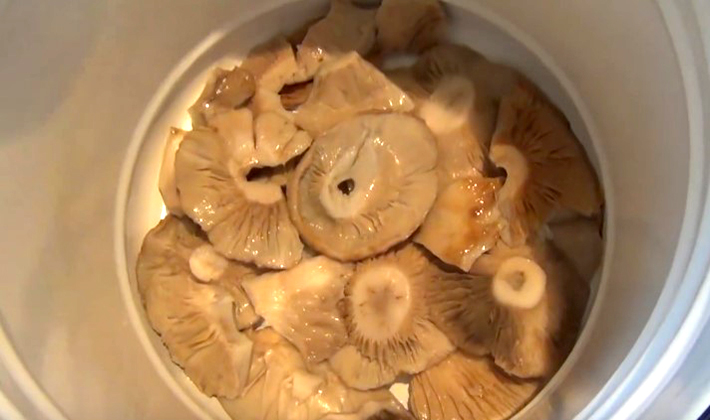 Avant de saler les champignons dans un tonneau à froid, les champignons récoltés par temps sec sont nettoyés en enlevant toutes les parties endommagées, puis les champignons sont lavés à l'eau froide.