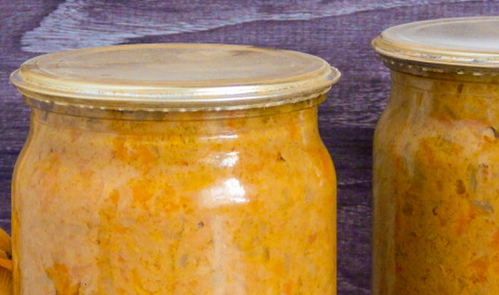 La recette du caviar de champignons des girolles avec l'ajout de ketchup piment fort est facile à mettre en œuvre. Dans ce mode de réalisation, les champignons avec des légumes ne sont ni bouillis ni frits.