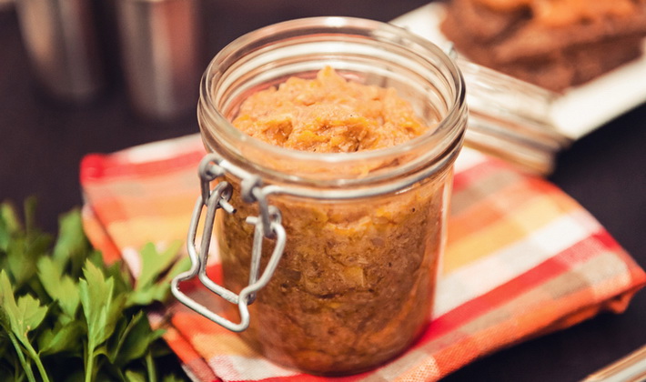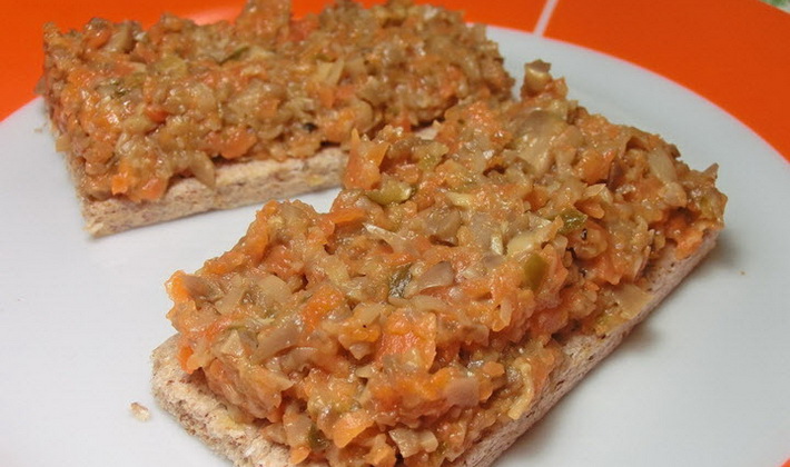 - Caviar de chanterelle avec oignons, carottes et poivrons