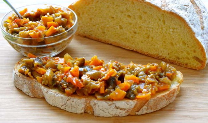 Vous voulez toujours surprendre votre famille et vos amis en vacances avec quelque chose. Essayez de faire cuire le caviar de champignons de girolles avec l'ajout d'aubergines et de tomates.