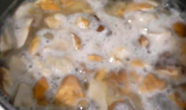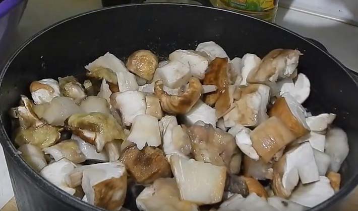 - Épluchez, rincez, hachez et faites bouillir les champignons dans de l'eau salée.