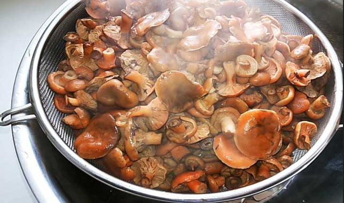 - Les champignons sont nettoyés, lavés et bouillis pendant 20 minutes dans de l'eau bouillante.